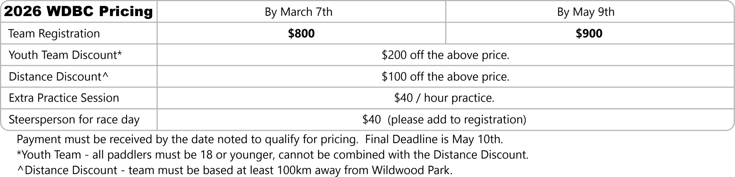 Participants under 18 years old must submit a “Youth Consent Form”. Participants 18 and older must submit the TRPC Adult Waiver, both forms can be downloaded below. Forms must be handed in to Event Registration a minimum of 45 minutes before your team plans to load the boat. It is the responsibility of the team captain to ensure that all forms are completed in full. In the interest of safety, WDBC reserves the right to refuse participation if deemed necessary.